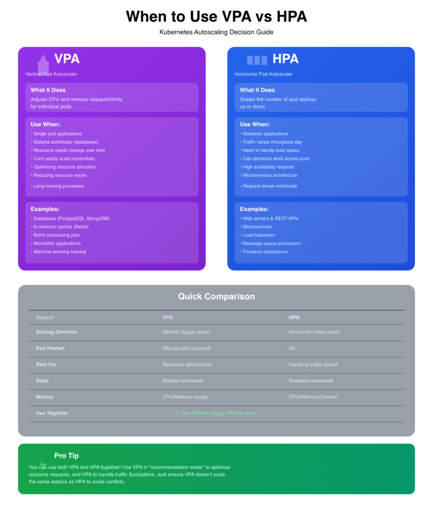 Here we present a chart to compare VPA vs HPA easily and when to combine them.