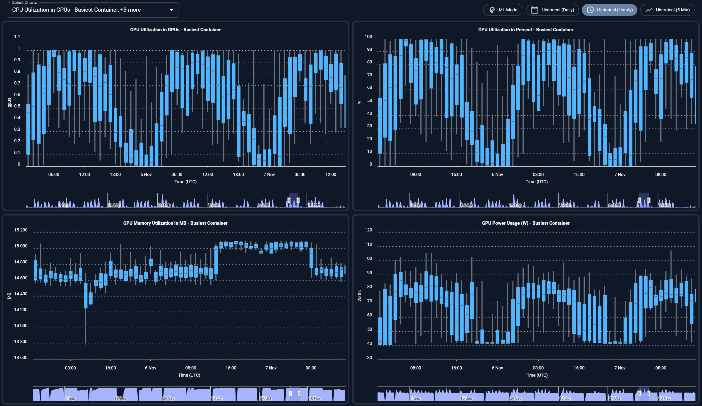 - Provides real-time metrics across utilization, memory consumption, and power draw